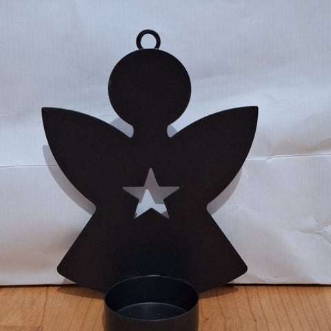 Lasinen kynttilänjalka enkelikellokynttilälle. Korkeus 10cm. Retrohan tämä jo on. Erittäin hyvä kunto. Pieniä koloja jokunen, ovat valuvikoja.