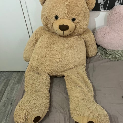 Suuri beige nallekarhu pehmolelu.