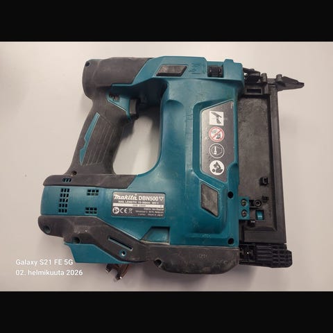 Vuokrataan MAKITA DBN500ZJ viimeistelynaulain, jonka sisäänrakennettu kompressori mahdollistaa samanlaisen naulaustuntuman kuin paineilmakäyttöinen naulain.