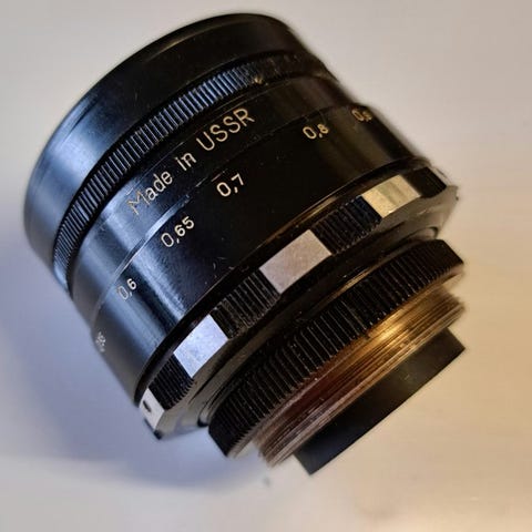 Mekaanisesti täysin toimiva. Etu-elementissä melko paljon hiusnaarmuja, taka-elementti aika hyvä. Varmasti joitain pöly-partikkeleita sisällä myös. En itse huomannut mitään ihmeellistä kuvissa kuin että vasta valoon kuvattaessa kontrasti tippuu huomattavasti.