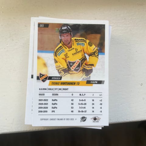 Myydään vajaa kansiollinen jääkiekko kortteja pois alta. En itse tiedä korteista hirveästi niin myyn halvalla pois