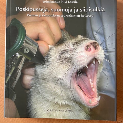 Poskipusseja, suomuja ja siipisulkia-kirja eläintenhoidon opiskeluita varten. Selailtu vain muutamia kertoja, eikä kirjaan ole tehty merkintöjä. Postitus tai nouto Iisalmesta.