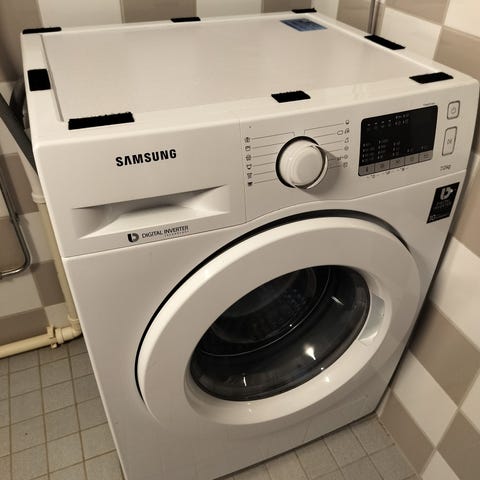 Noin 2018 vuodelta oleva pesukone, toimii täysin. Pieniä käytön jälkiä ulkopuolella. Nukkasihti puhdistettu säännöllisesti ja vaihdettu poistoletku uuteen vuosi sitten.