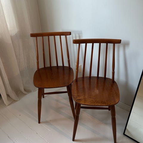 Hyvät, tukevat ja ehjät vintage pinnatuolit uutta kotia vailla.