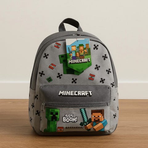 Hyvä kuntoinen reppu Minecraftista tykkäävälle