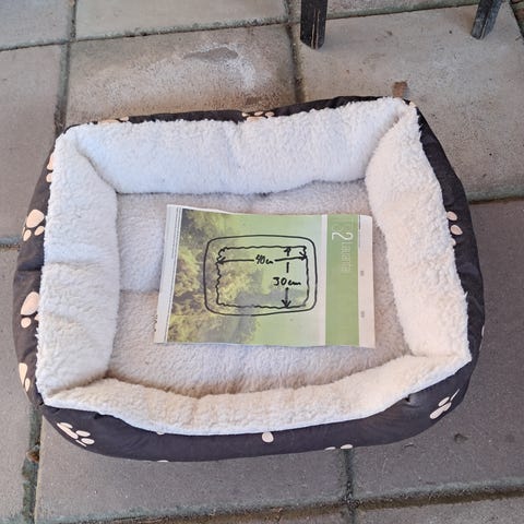 Koko 50cm*40cm, ulkomitat 75cm*65cm.sekä toinen koiran alusta.