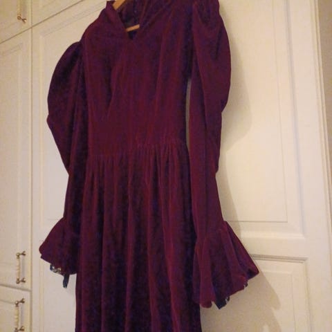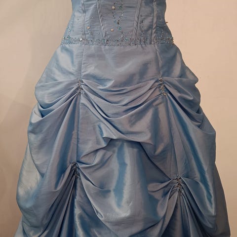 Vanhojen tansseissa kerran käytetty 20-vuotta sitten. Teetetty ompelijalla. Koko XS/s. Pituus 165cm henkilöllä, jonka päällä mekko on kuvassa.