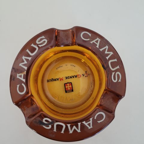 Retro Camel tuhkakuppi lasia keltaisilla logoaiheisilla pinnoilla. Halk. 11cm.