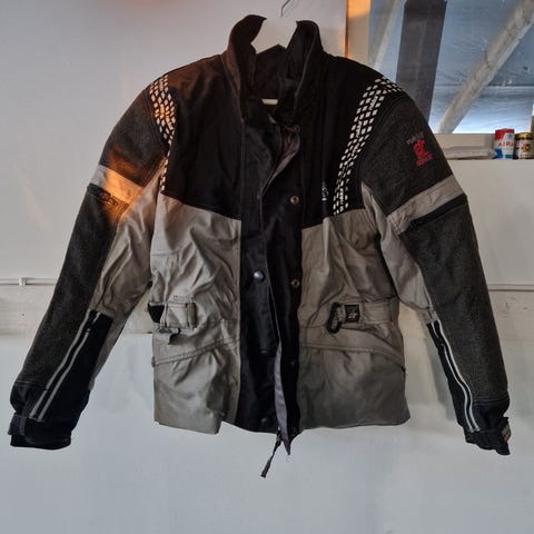 Ok kuntoiset ajoasut seuraavalle käyttäjälle,toinen asu on kooltaan 52 ja toinen on takki 50 ja housut 48,hinta on 100e puku