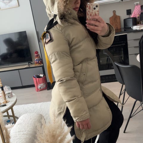 Parajumpers naisten untuvatakki koossa S. Pitkä, musta ulkotakki, jossa untuvatäyte. Takissa on vetoketjukiinnitys ja painonapit, sivutaskut sekä huppu irroitettavissa.