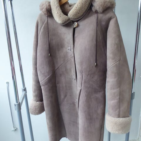 Huolellisesti tehty, luultavasti lehmännahkainen, pitkä turkki. Turkki on hyvässä kunnossa. Koko on L-koon luokkaa. Hihan pituus on 56cm, ympärysmitta kainalon alta 120cm ja helman pituus 105cm.