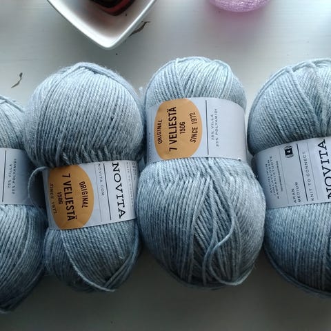 Novita 7 veljestä 150g/300mx6=900g väri076sorbet 75%villa,25%polyamidi. Puikko 4