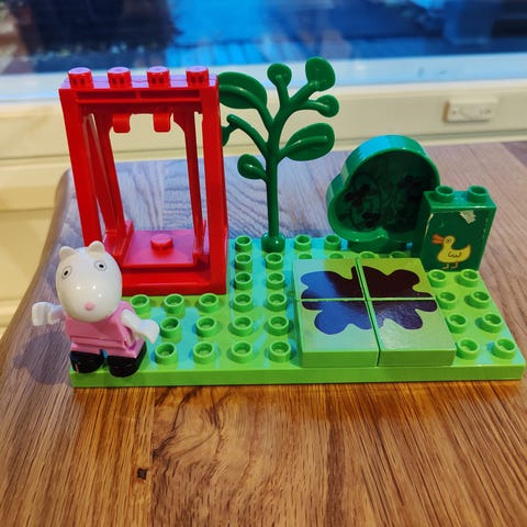 Hiihtävä Pipsa Possu, irrotettavat sauvat ja sukset.