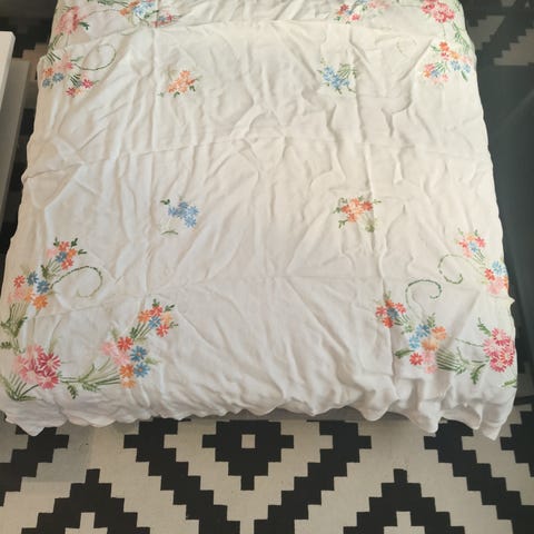 Kukkakaitaliina, siisti ja ehjä. 43x80 cm.