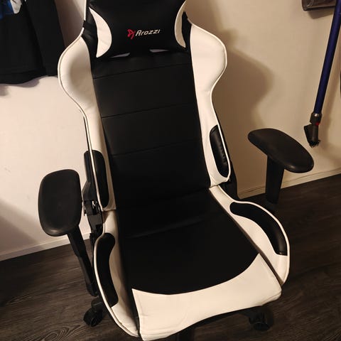 Käytetty pelituoli vasemassa käsinojassa pieni paikkaus muuten siistissä kunnossa