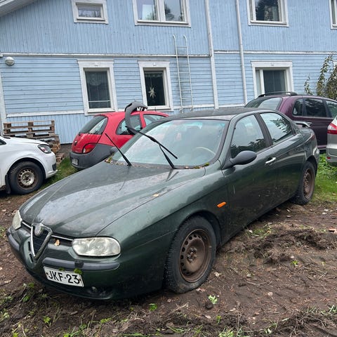 Myydään Alfa Romeo 156 2.5 V6 vm.1998 osina. Lähes kaikki osat löytyy. Ovien listat puuttuu. Puskurit huonot.