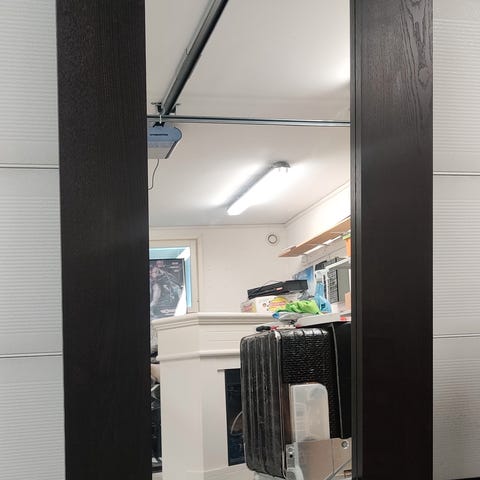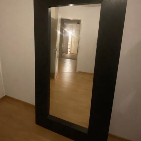 IKEA peili, jossa leveä musta kehys. Suorakulmainen malli sopii esimerkiksi eteiseen, olohuoneeseen tai makuuhuoneeseen kokovartalopeiliksi. Kehys on yksivärinen ja selkeälinjainen, ja peili voidaan sijoittaa seinälle pystyasentoon. Materiaali on tyypillistä IKEA-sisustustuotteiden peili- ja kehysmateriaalia, kuten lasia ja puu- tai puukuitupohjaista runkoa. Koko 94 x 190 cm.