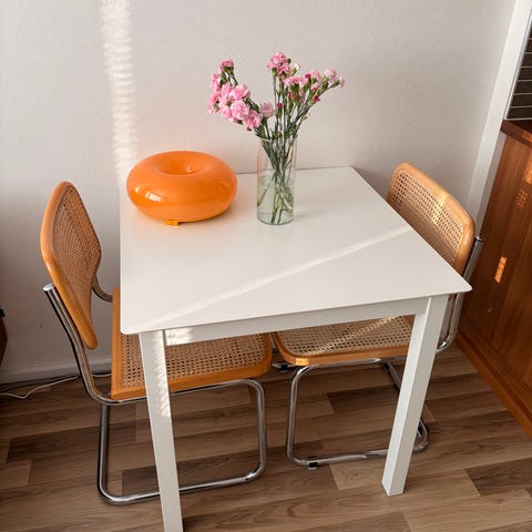 Muutaman kuukauden käytössä ollut Ikean NORDVIKEN ruokapöytä taittokannella.