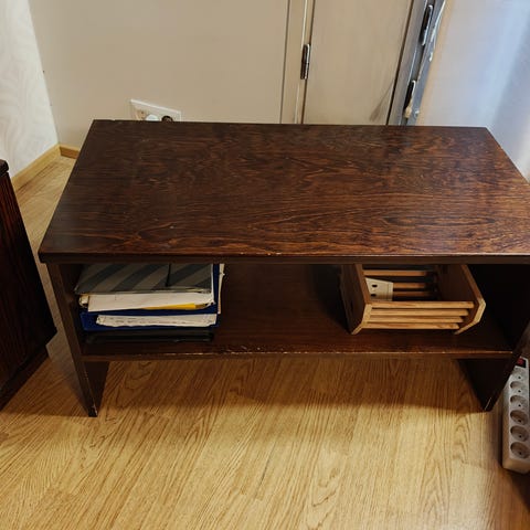 Puinen Tv-taso/hyllykkö, vanhanajan valkea. Teetetty 15 vuotta sitten.