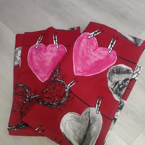 Hyväkuntoinen Vallila Metsäruusu sivuverho. Pituus n.214, leveys 148