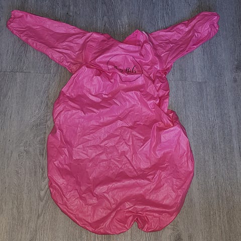 Ruokalappu on niin iso että menee esimerkiksi Antilop syöttötuolin tarjottimen päälle. Ruokalapussa on myös reiät koukuille jotka laitetaan tarralla kiinni syöttötuoliin. Koukut eivät tule mukana koska ne voi kiinnittää vain kerran. Vaataavia saa marketeista.