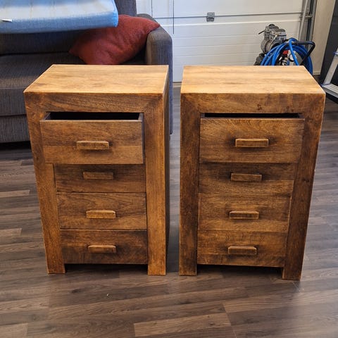 2 kpl.tta yöpöytiä joiden materiaali on mänty. Ei kolhuja, tarroja tai piirtelyjä. Leveys 38.5 cm, syvyys 27 cm, korkeus 44.5 cm. Kaksi tasoa yhdellä laatikolla. Mieluiten nouto. 30e/kpl