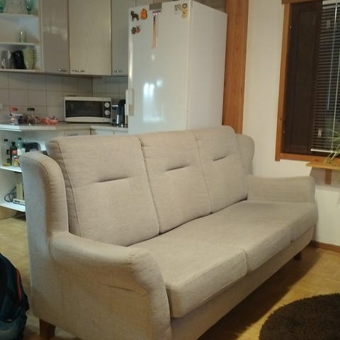 Luovun tästä sohvasta ilmaiseksi muuton vuoksi. Sohva on hyvässä kunnossa, ja se on ollut käytössä yhteensä vain noin kaksi vuotta. Vain nouto. Sohva annetaan ensimmäiselle, joka pääsee hakemaan sen!