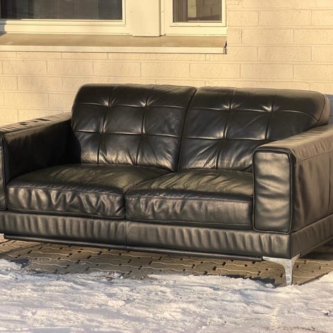 Kahden istuttavat nahkasohvat. Ei mitään tekonahkaa.