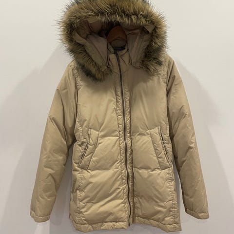 Uudenveroisessa kunnossa oleva oikein lämmin kauniin mallinen tyköistuva untuvatakki. Käytetty vain muutaman kerran ja jäänyt sen jälkeen kaappiin, kun hihat olivatkin itselleni lyhyet (olen yli 180cm pitkä, harvoin takeissa riittävä hihamitta, takissa ei siis ole mitenkään poikkeuksellisen lyhyitä hihoja). Koko 40 ja merkki Mexx.
