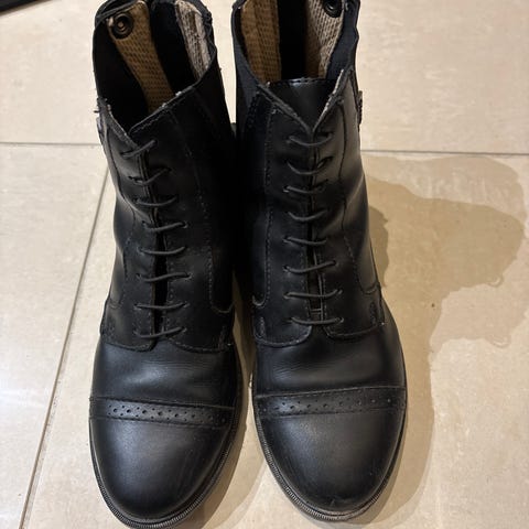 Oikean kengän etuosasta nahkassa särö n. 2cm pituudelta, tämä tarkemmin kuvassa.