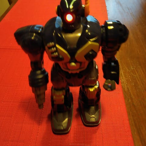 Robotti mikä kävelee ja ampuu. Uudet patterit vaihdettu.