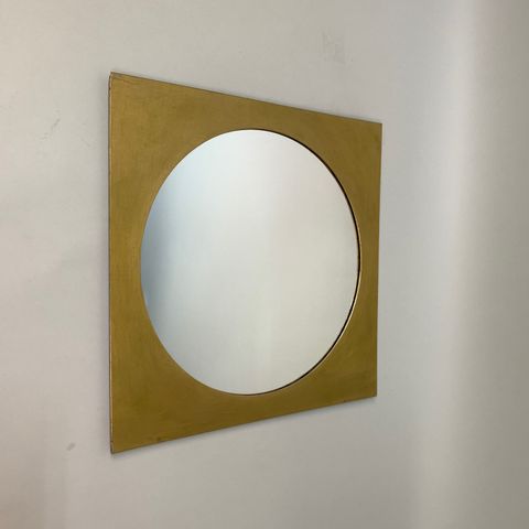 Retro kylpyhuoneen peili lasisella hyllyllä. Runko kromattua terästä.