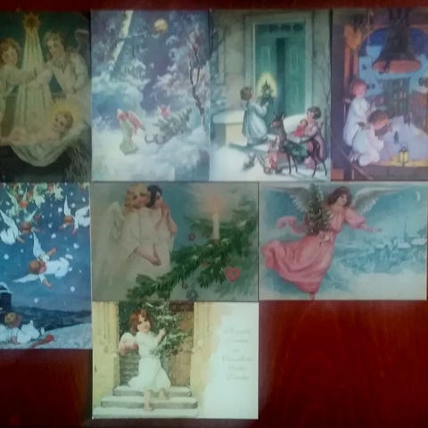 Vuosikymmeniä sitten kulkeneita enkelikortteja, jotka pääosin ovat kulkeneet jouluna ja uutena vuotena. Kortit maksavat euron kappaleelta. Postimaksu on 2,75 euroa 50 grammaan asti kirjeessä. Sitä painavampi kirje maksaa 5,50 euroa.