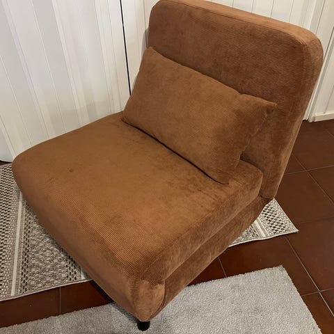 Vuodetuoli taittomekanismilla. Helppo avata 230cm pitkäksi vuoteeksi/makuualustaksi. Myös mukava istuttava. Toiminut aiemmin lastenhuoneessa lukutuolina ja varavuoteena. Kangas ehjä ja puhdas. Myydään pois tarpeettomana. Nouto Vantaan Vapaalasta.