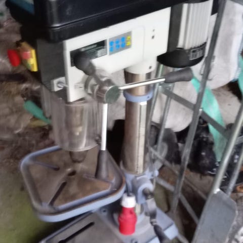 Paljon järeämpi ja painavampi kuin nykyiset halpislaitteet. Ei ole tarvinnut edes pöytään kiinnittää. Paksu valurautarakenne, mm. pylväs 80 mm.
