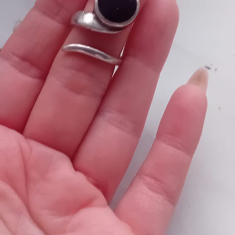 Hopeinen sormus, leimalla 925. Koko 17,5. Toinen leima HHNMI. Sormus ei ole täydellisessä kunnossa.