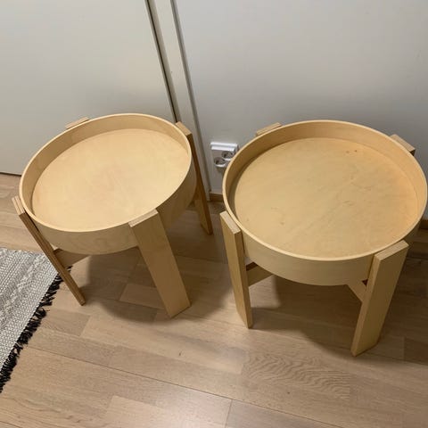 Pöytä on erittäin hyvässä kunnossa, huolellisesti pidetty ja siisti. Myydään ilman tarjotinta, joten sopii erinomaisesti esimerkiksi sivupöydäksi, yöpöydäksi tai olohuoneeseen.