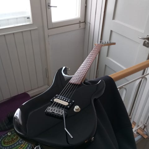 Tällä hetkellä ilman kieliä, mutta laitan uudet Ernie ball (super, regular tai power) slinky -kielet paikoilleen ennen kauppoja, ostajan valinnan mukaan. Kevyesti vuorattu kitarapussi kuuluu kauppaan.