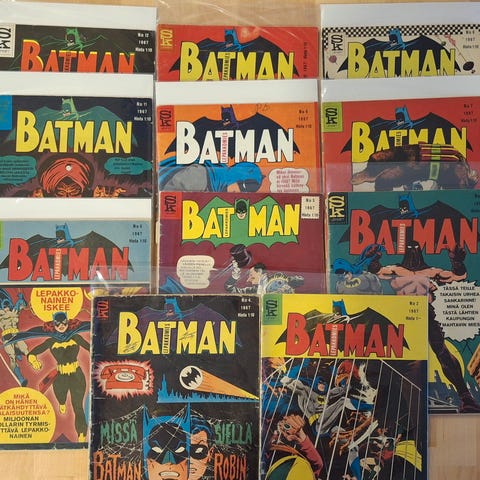 Nyt tarjolla todellinen keräilyharvinaisuus ja suomalaisen sarjakuvahistorian kulmakivi: Batman (Lepakkomies) numero 1 vuodelta 1966. Tämä on kaikkien aikojen ensimmäinen Suomessa julkaistu Batman-lehti.