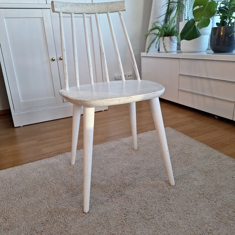 Myydään 4 kpl valkoisia pinnatuoleja. Vanhat ja kulumaa löytyy, maalipinnassa halkeilua. Kuitenkin vielä käyttökelpoiset!