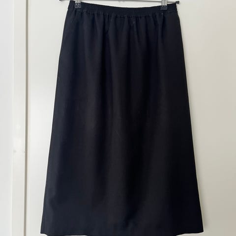 Musta maxihame, paksuhko tukeva materiaali. Hyvässä kunnossa. Pituus noin 98cm ja vyötärönympärys noin 76cm