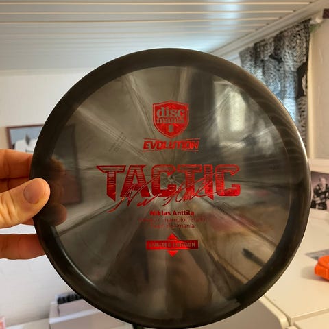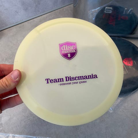 Discmania FD C-Line frisbeegolfkiekko. Punainen muovinen väylädraiveri, jossa C-Line -muovi. Kiekko heitetty kerran