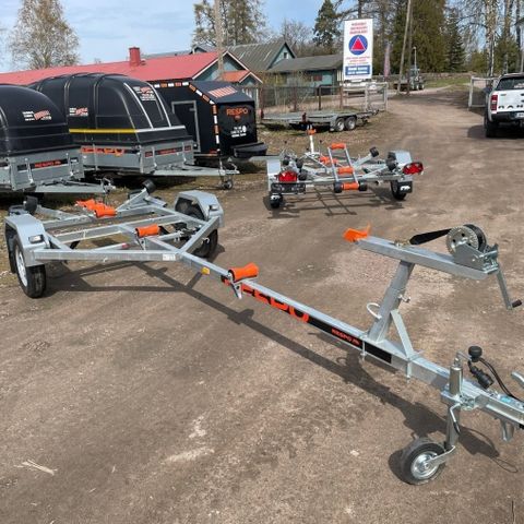 Vakiovarusteluun kuuluvat säädettävät kölirullat, portaattomasti säädettävät sivutuet sekä kitkavinssi vetoliinalla, jotka helpottavat veneen nostoa ja laskua. Käyttömukavuutta lisäävät koko perän levyinen peräkippi, kävelyramppi sekä kaasujousiavusteinen sivutukipari, jotka sujuvoittavat vesillelaskua ja veneen asemointia. Vesitiiviit laakerit, RST-jarruvaijerit sekä peruutusautomatiikalla varustetut jarrut lisäävät huolettomuutta ja ajoturvallisuutta.