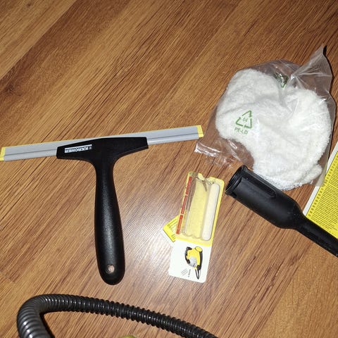 Tästä Kärcherin höyrypesuri joka joutaa tulevan muuton myötä myyntiin.