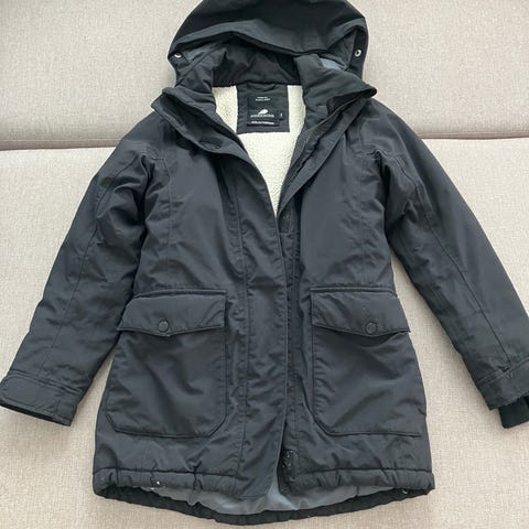 Musta kapeamallinen talviparka koossa 150, vedenkestävä. Siistissä kunnossa, ollut yhdellä lapsella, pesty pari kertaa.