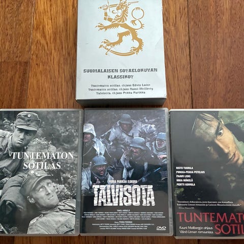 Suomi sodassa DVD-elokuvasarja. Kokoelma suomalaisia sota-aiheisia elokuvia ja dokumentteja, kuten