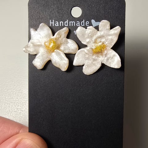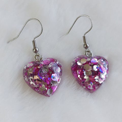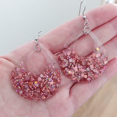 Tehty muotilla koruhartsista. Seassa kulta glitteriä. Kevyet ja mukavat käyttää.