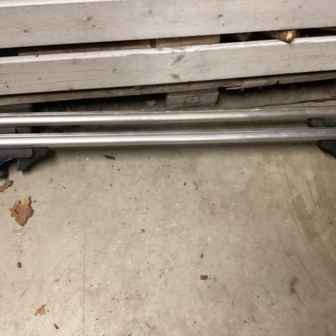 Menabo Brio kattotelineet avoimiin kattokaiteisiin. Telineiden pituus 119cm, kattokaiteiden välinen etäisyys max. 100cm. Kaksi avainta. Käytön jälkiä.