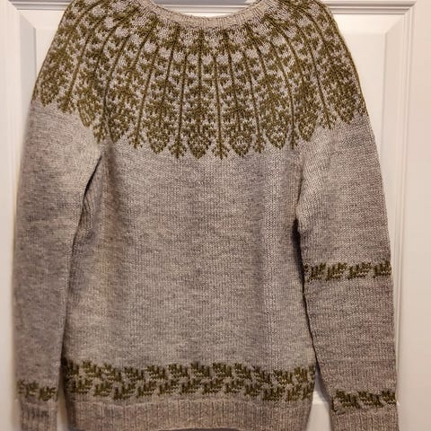 Lettlopista, joka islantilaista villaa, käsityönä kudottu Metsänpeitto niminen neule.