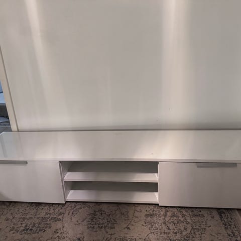 Myydään JYSKistä ostettu valkoinen tv-taso muuton alta pois.